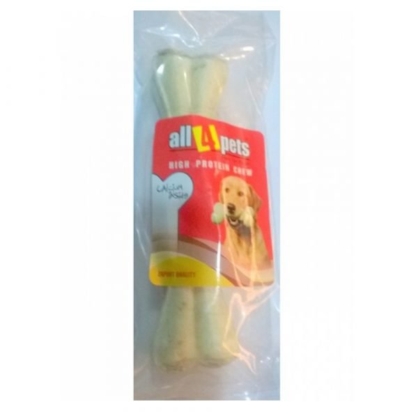 DESCRIPTION: – all4pets RAWHIDE WHITE PRESSED BONE of 8 inch is a tremendous dog bones. Chewing rawhide bones helps to keep plague away that can cause gingivitis. Every dog inherent desire to chew, but aberrant chewing can be a sign of lack of exercise or a vitamin deficiency but this is a normal desire to chew. Even this derive can exhibit itself on furniture or clothes. So, these bones are natural way to satisfy dog’s instinctive urge to chew!
